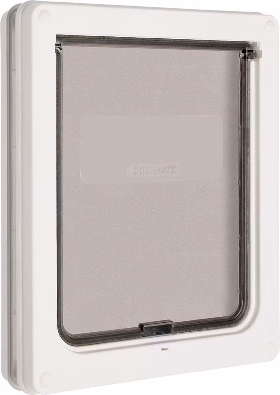 Hunddörren är tillverkad i slitstarka material som klarar daglig användning och är utrustad med en smart stängningsmekanism som ger dig full kontroll över när din hund kan passera. Tack vare 4-vägslåset kan dörren ställas in på helt öppen, helt låst, endast in eller endast ut.