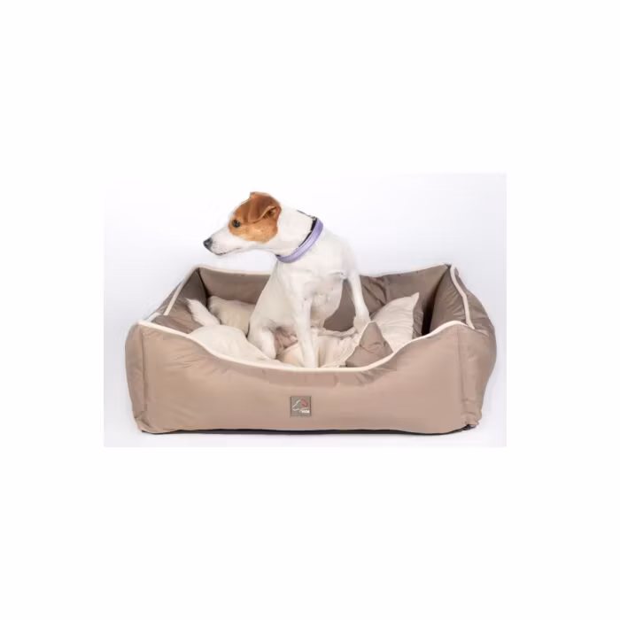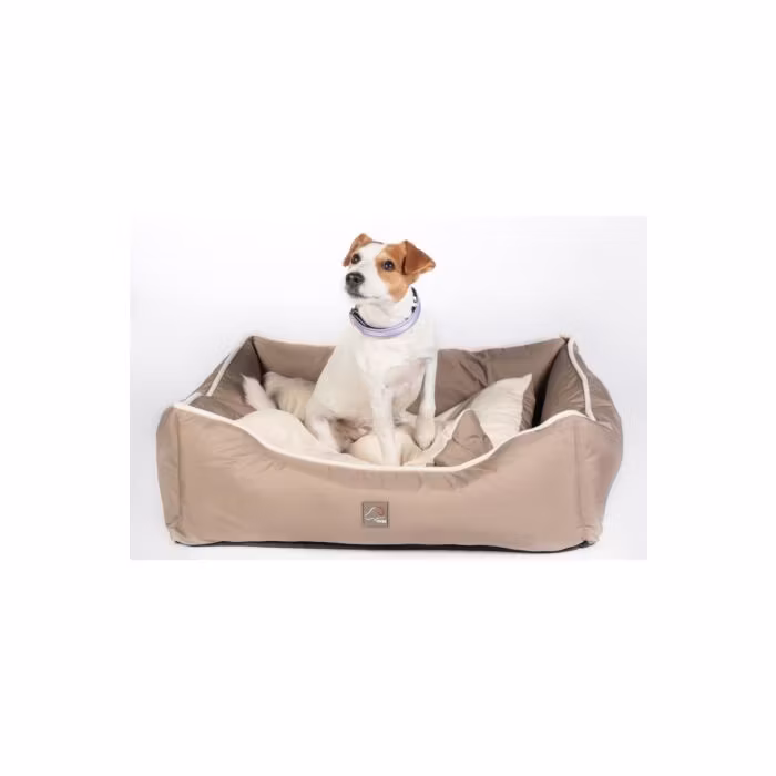 Amitye är en bekväm och funktionell hundbädd som kombinerar mjuk komfort med praktiska detaljer. Det vattenavvisande yttertyget skyddar mot fukt och smuts, medan den låga ingången gör bädden lätt att ta sig i och ur – perfekt för både unga och äldre hundar.