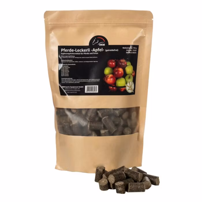 Hästgodis – Äpple är ett spannmålsfritt godis som gör belöning och träning extra roligt för din häst. Den goda äppelsmaken uppskattas av de flesta hästar, samtidigt som det spannmålsfria innehållet gör det lämpligt för hästar med känslig mage.