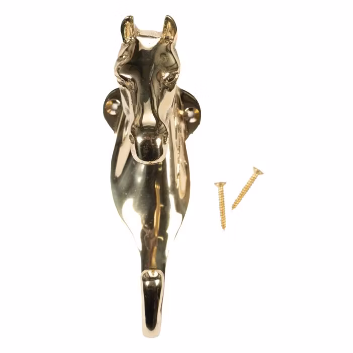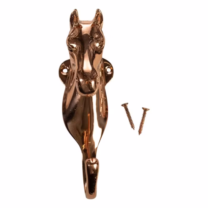 Hästhuvudkrok i mässing kombinerar funktionalitet med en elegant och dekorativ design. Kroken är formad som ett hästhuvud och fungerar både som praktisk upphängning och som en stilfull inredningsdetalj i stall, sadelkammare eller hem.