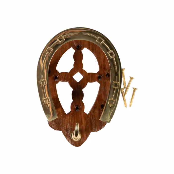 Tränshängare – Hästsko – i trä och mässing kombinerar praktisk funktion med en elegant och dekorativ design. Den stadigt tillverkade tränshängaren erbjuder flex